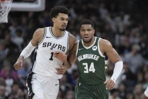 “我认为他应该学习扬尼斯,当他持球时他就能有统治力,他每个回合都要给对手压力,要么扣篮要么对手就需要犯规。文班亚马需要在转换中多持球,我不想他直接变成控卫。”